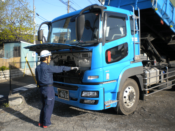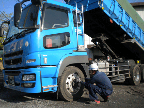 「お客様からお預かりした荷物を安全に運搬する為の運行前車輌点検の様子です」